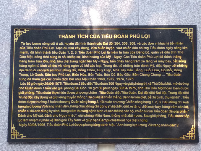 Vào lúc 19 giờ ngày 05/6/1965 tại xóm Vườn Trầu, ấp Hố Mên, xã Long Nguyên, huyện Bến Cát (nay thuộc ấp Đồng Bà Ba, xã Long Hòa, huyện Dầu Tiếng) Tiểu đoàn Phú Lợi đã được thành lập. Từ khi ra đời, tiểu đoàn Phú Lợi đã lập nên nhiều chiến công, xóa phiên hiệu nhiều tiểu đoàn, đại đội địch.