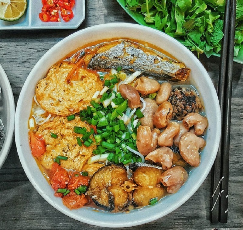 Phần nước dùng thì chuẩn vị ngon, có chút cay cay kích thích đầu lưỡi, từng miếng cá chiên giòn giòn, từng sợi bún thơm ngon ăn kèm với các loại rau sống như rau muống, hoa chuối thái nhỏ và dọc mùng thanh mát. Thật là không thể bỏ qua bún cá tại đây có đúng không nào!