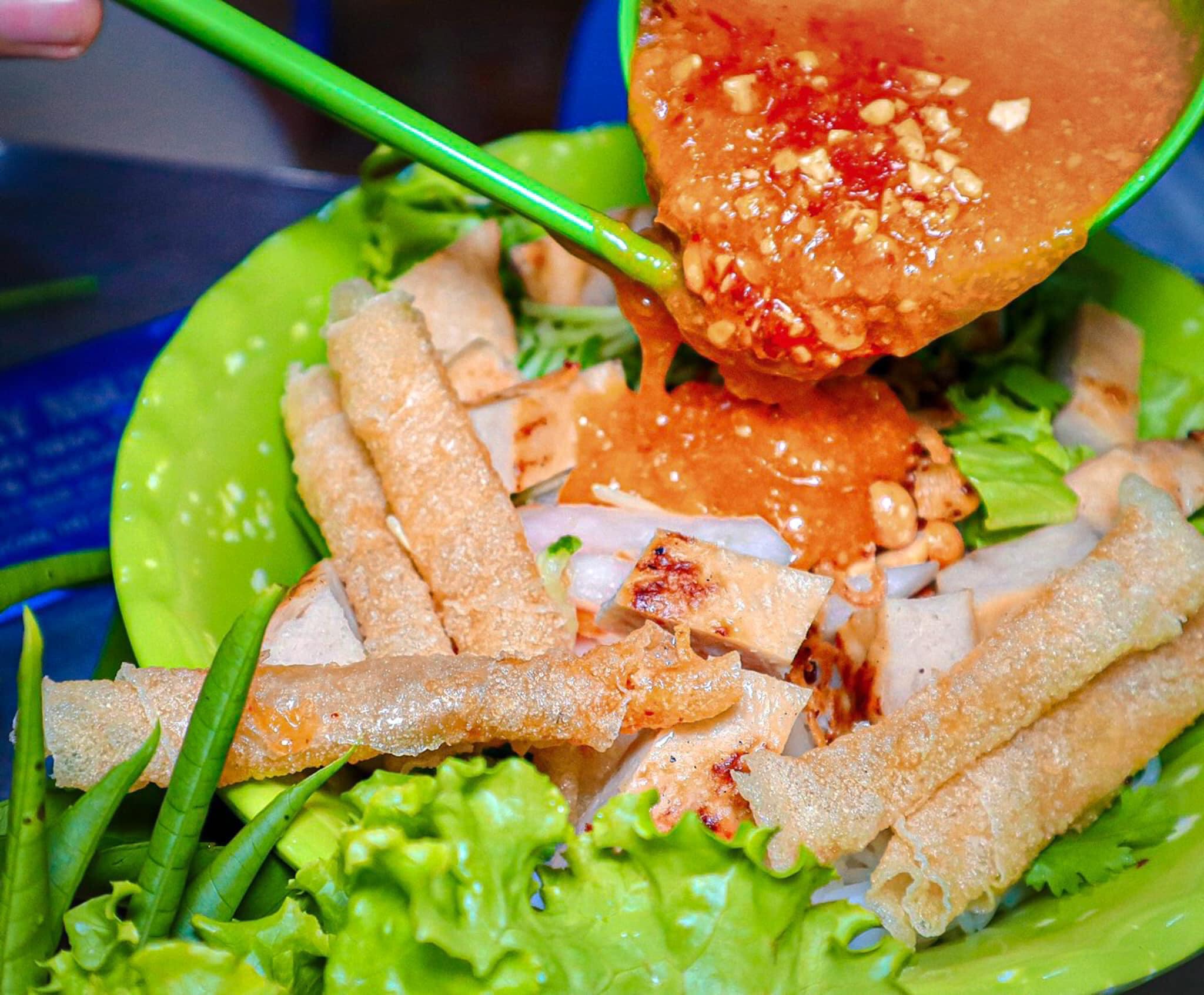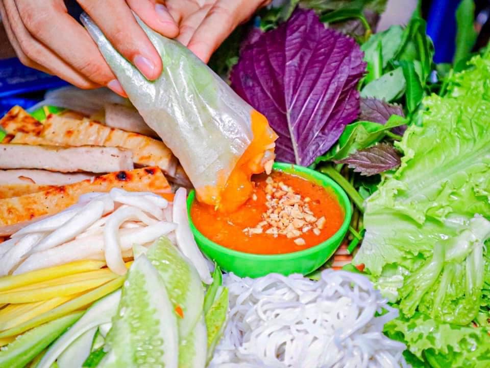 Với 40k là có ngay 1 mẹt nem nóng hổi gồm nhiều loại rau rừng, dưa leo, khế chua, lá cóc non, đồ chua, xoài, dưa leo, bún tươi, cùng với bánh tráng chiên giòn tan…khi ăn chỉ việc cuốn lại và chấm với nước sốt nếp ở tiệm, sốt ấm ấm, hơi beo béo tạo nên hương vị hiếm nơi nào có được.