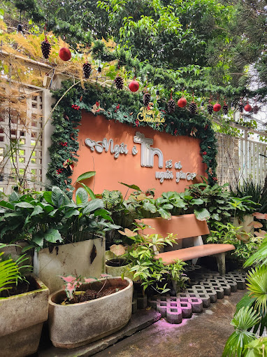 The Tín Coffee & Tea được trang trí không gian với tông màu đỏ, đen và trắng hiện đại và khu vực sân vườn ngập tràn sắc xanh mát mắt lại mang đến cảm giác nhẹ nhàng, thư thái. Không gian trong nhà với thiết kế thuần trắng từ tường, sàn đến bàn ghế càng khiến nơi đây thêm phần thanh lịch và trang nhã. Do đó mà nơi đây thu hút đông đảo các bạn trẻ gần xa đến vì khung cảnh thơ mộng giống hệt như quán cà phê Đà Lạt với những bức tường vẽ chữ nhiều màu sắc, chiếc gương lớn được đặt ngoài trời,... Bạn có thể thưởng thức cà phê tại quán và chụp thật nhiều bức ảnh đẹp với vô số cảnh quan tuyệt đẹp. Nếu đi vào buổi chiều thì bạn có cơ hội ngắm hoàng hôn buông xuống thành phố mới vô cùng lãng mạn. Bên cạnh đó thì đội ngũ nhân viên của quán rất nhiệt tình và chu đáo.