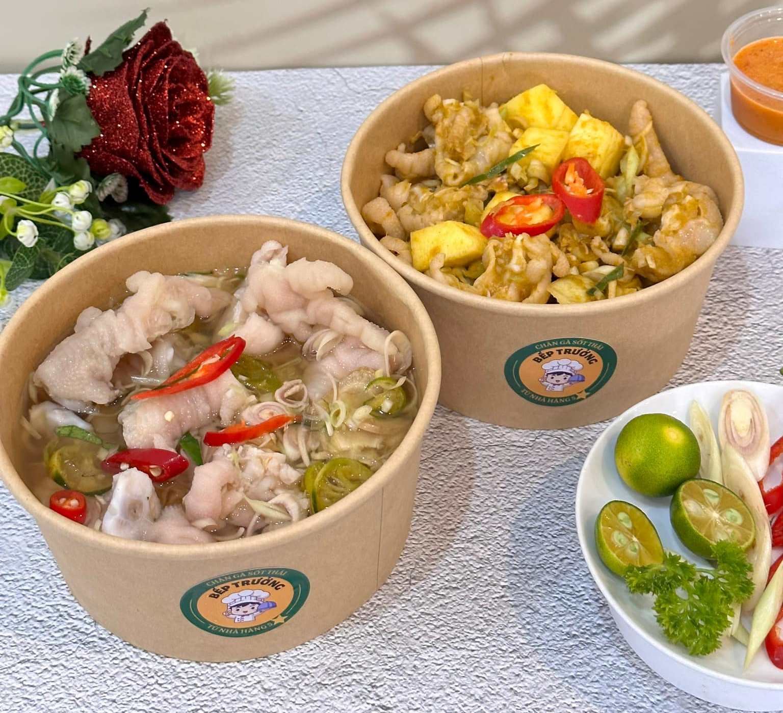 Quán có các loại trà (trà khóm, trà sữa trứng vị kem, trà sữa olong, trà đào cam quất , cà phê cốt dừa, cùng các món ăn vặt: chân gà sốt thái, khô gà lá chanh, bánh tráng,..