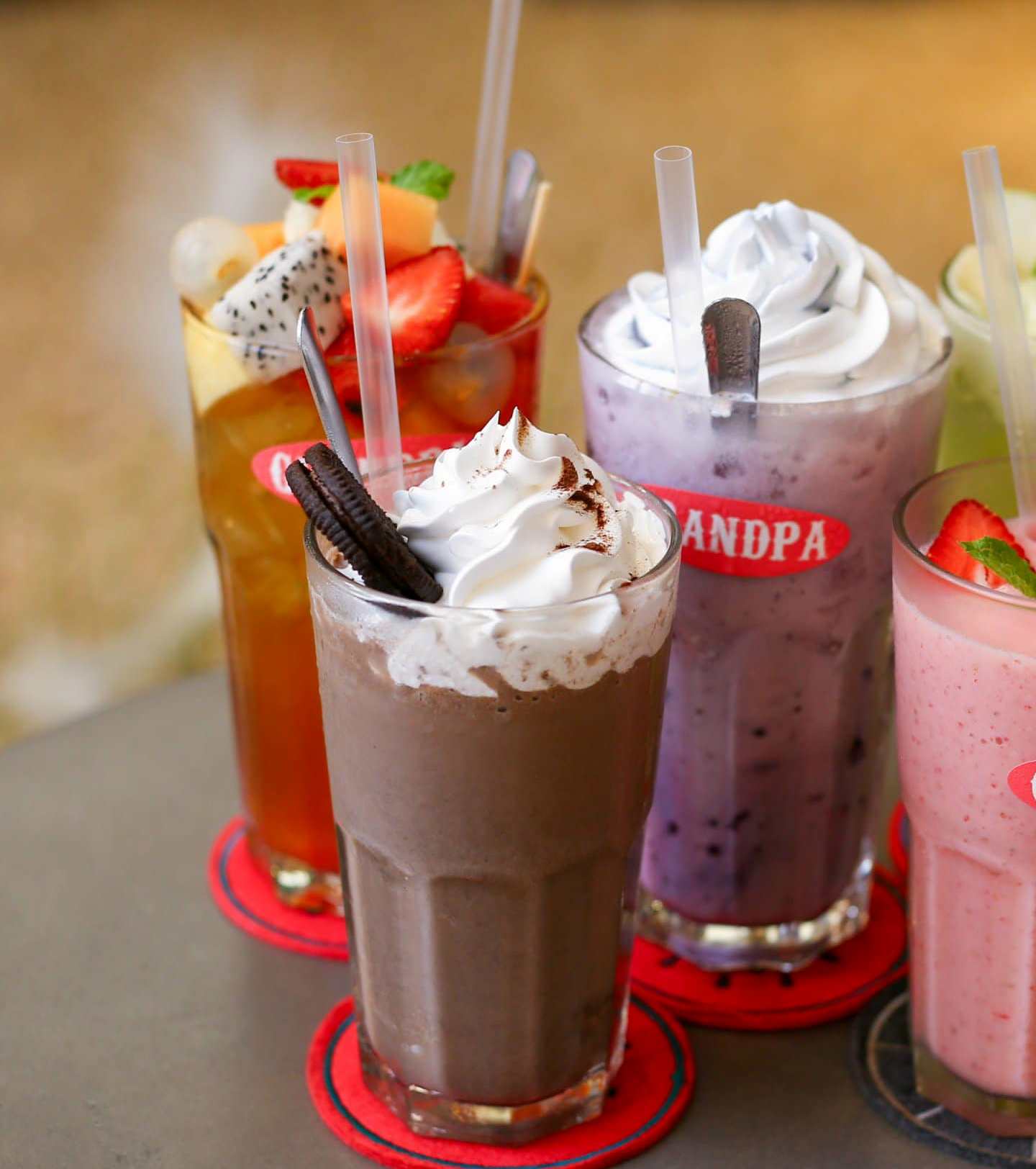 Quán có đủ các loại Café, trà sữa, trà trái cây, nước ép,….Ngoài không gian máy lạnh thì quán có các tiểu cảnh đồng hồ quá khứ, gương vô cực, bãi cát vàng,…ngoài trời để chụp ảnh check in.