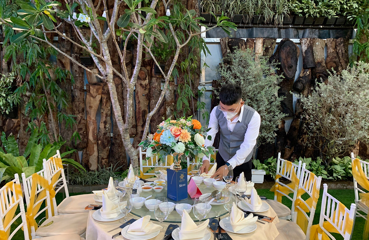 Về trang hoàng, từ khu vực lễ tân đến sân khấu và bàn tiệc đều được đội ngũ lành nghề, giàu kinh nghiệm trang trí khiến khung cảnh trở nên sinh động và sang trọng hơn.