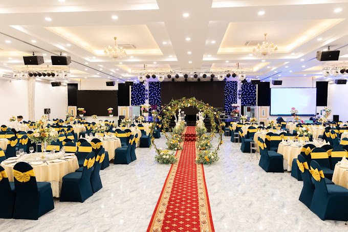 Ngay khi bước vào khu vực lễ tân, khách sẽ có ấn tượng và cảm nhận rõ ràng về phong cách. Có khu chụp ảnh nhóm gồm hoa, pha lê, hoa lụa cao cấp,… là nơi ghi lại những bức ảnh kỷ niệm của bạn tại bữa tiệc.