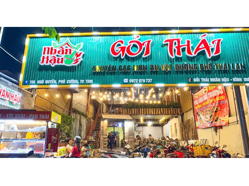 Quán chuyên về các món gỏi Thái chuẩn vị. Quán nổi tiếng với việc sử dụng nhiều loại topping khác nhau trong món gỏi, từ hải sản: tôm, mực, sò huyết, cá hồi. Gỏi Thái ở đây được đánh giá là có vị chua, cay, mặn, ngọt hài hòa, đậm đà và phù hợp với khẩu vị người Việt. Sợi đu đủ đâm thấm vị nhưng vẫn giữ được độ giòn.