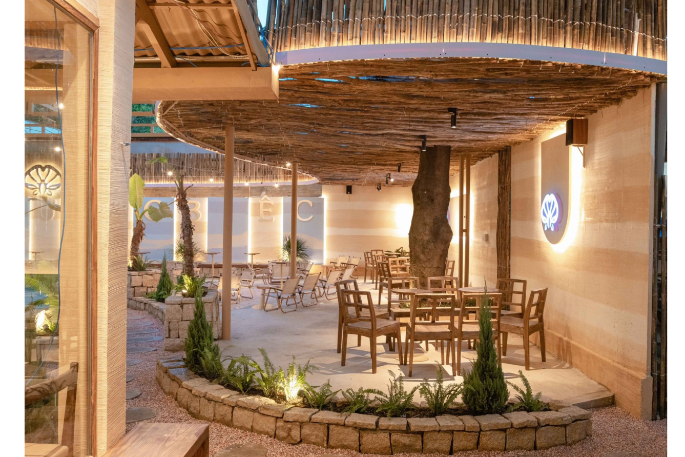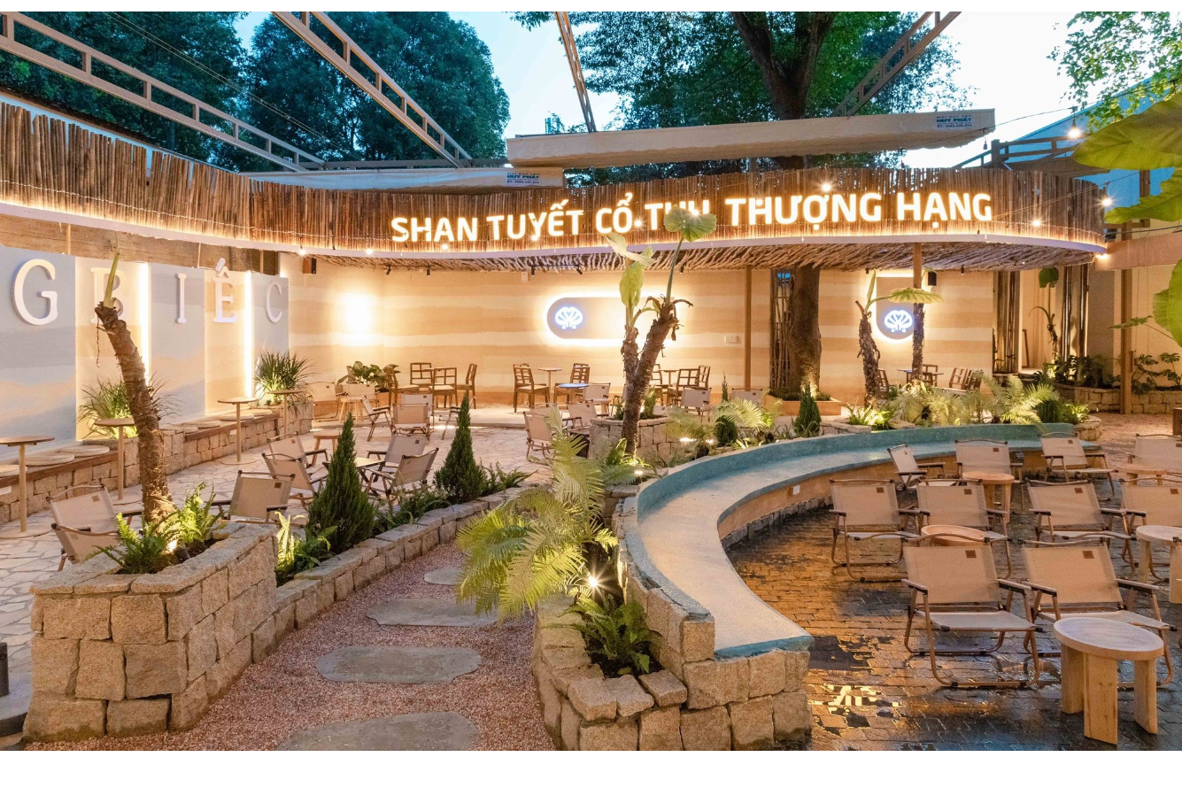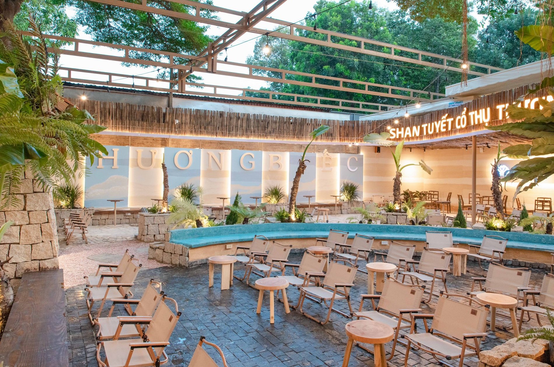 Quán có không gian ngoài trời và phòng lạnh. Bàn ghế đa dạng: bàn cao + ghế bar, bàn thấp + ghế mềm hoặc sofa để khách thoải mái chọn vị trí ưa thích. Thiết kế của quán mang phong cách nhẹ nhàng, thiên nhiên và sự thư giãn. Màu chủ đạo thường là các tông pastel dịu, màu gỗ ấm, cây xanh được trang trí khéo để tạo cảm giác dễ chịu, mát mắt.
